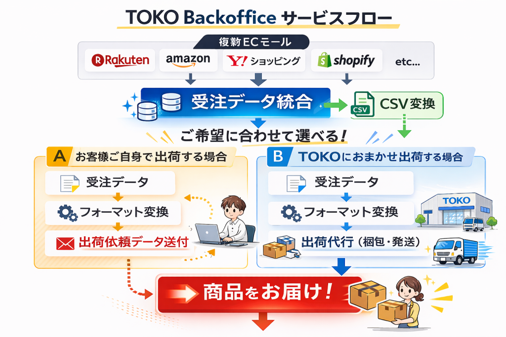 EC事務代行・受注データ統合・出荷代行ならTOKO